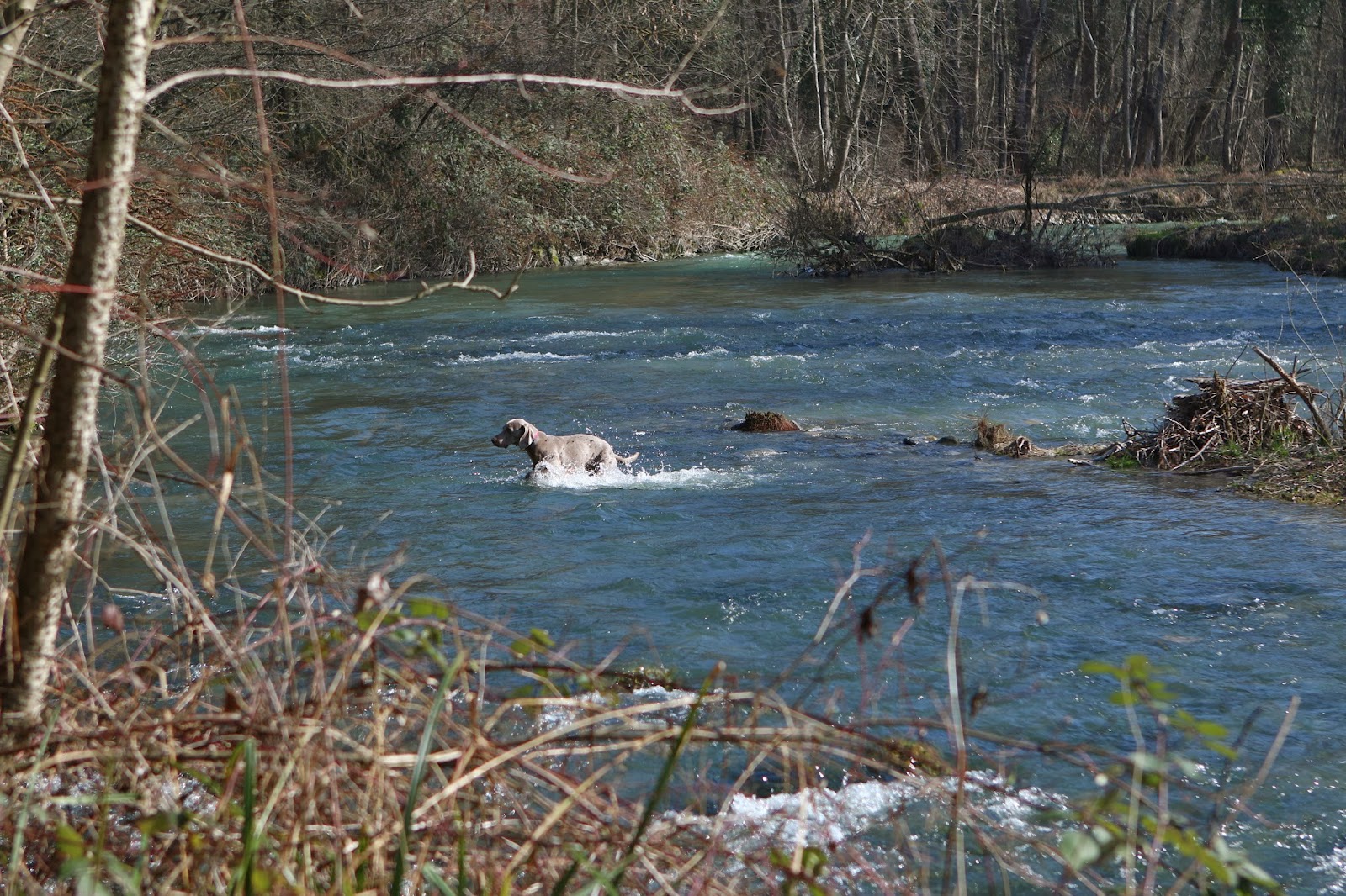 Dommage, je n’avais pas pris mon appareil photo car, j’aurais pu filmer un vidéo gag. Près des taillis qui longent le ruisseau, il y avait un ballon de baudruche blanc. J’ai remarqué que Nicky était intéressé par ce drôle d’objet. Je me suis approché de la chose et, j’ai rappelé Nicky et, je lui ai demandé de me le rapporter. Le pauvre, il nioussait car, il ne savait pas comment le prendre. J’ai pris le ballon et, je l’ai envoyé légèrement en l’air afin qu’il essaie de l’attraper. Ce petit jeu a duré environ 1 minute. Ensuite, Nicky a réussi et, il en était fier à m’apporter ce ballon. Le temps que le prenne dans la main, ce ballon s’était “essoufflé”. MDR.