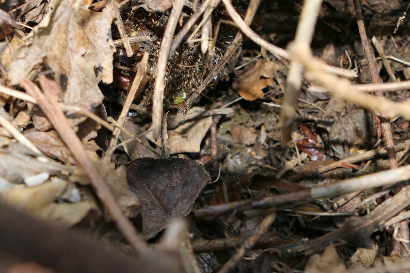 Hello, hello! Le soleil brille, brille, hello, c’est un temps superbe pour une balade matinale le long de l’Aubonne. Nous n’avons vu que 2 pêcheurs et 1 marcheur. Aucun promeneur de chien à l’horizon. Nicky et Silver se sont acharnés sur un tas de vieux bois mais, je n’ai pas réagi de suite et, je n’ai absolument pas pensé à ce qui allait en ressortir. Ça a été vraiment la “Surprise” du jour. Ce qui est bizarre, c’est qu’il y a deux soirs avant, une de ces bestioles était dans le jardin vers 22 heures. Nicky et Silver ne s’en sont pas approché. Le temps de revenir avec mon appareil photo la bestiole à pics avait disparue.