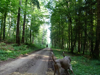 L’après midi, nous avons été chercher l’ami Fabrice qui adore se balader en forêt et qui aime les chiens. Nous sommes parti dans la forêt de Pampigny. La première rencontre c’est effectuée avec un Berger du Tibet qui n’était pas très zen. Il a de suite montré les dents et grogné sur Nicky, Nous avons pas insisté. Le croisement c’est effectué le plus rapidement possible. Dés le début, j’ai remarqué que la maîtresse de ce chien n’était pas à laisse. J’ai donc de suite improvisé pour garder mes chiens sous contrôle et, passé rapidement mais tout de même le plus relax possible. Beaucoup de maître ne s’imagine pas ce que leur chien peut capter de leur sentiments. Le transfert de leur peur sur leur compagnon à 4 pattes peut très vite être ressenti. Nous avons croisé également une famille anglophone (un couple avec 2 enfants) qui avait posé leurs vélos pour ramasser quelques mûres.