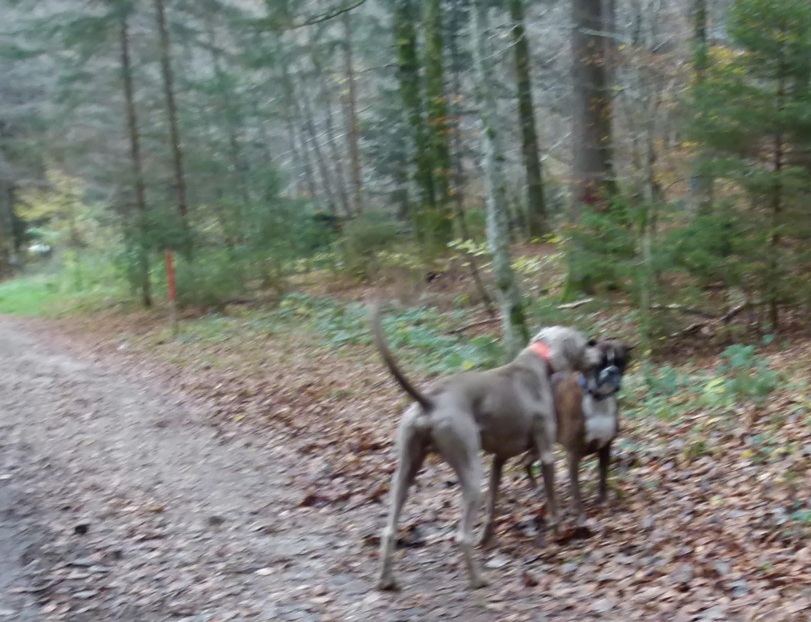 Ce matin, nous avons été nous balader dans la forêt et campagne de Yens. Dans la 1ère heure du parcours, nous avons croisé les moutons qui broutent du côté d’Apples. Ensuite, nous avons pris un chemin dans la forêt pour continuer notre boucle de balade. Au ¾ du parcours, j’ai vue en premier, un couple de cueilleurs de champignon. Tout a coup, j’entends qu’ils vont un rappel de leur chien que je n’avais pas repéré. C’était une Boxer très « pénarde » qui s’est couchée et, qui a attendu que mes 2 champions viennent lui dire « Bonjour ». Pendant ce temps, monsieur et madame, s’égosillait à rappeler leur chienne. (Je trouve ça tellement drôle de genre de rappel. Laissez faire le contact entre chiens et, après, si le chien s’éloigne de ces maîtres alors là… OUI, faite un rappel) Il y a quelques fois ou, le chien n’écoute pas le maître….. et, je peux le comprendre…… certain maître ne sont vraiment pas « cool » avec leur compagnon. Si, le cas, se présente, je reviens en arrière vers le maître afin, que son chien soit à nouveau vers lui. Heureusement, c’est des cas très rares).