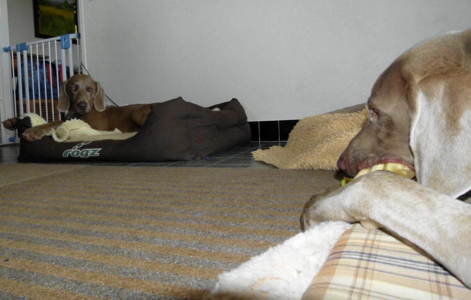 De temps en temps, ont donnent à Nicky et Silver des oreilles à ronger….C’est, pour qu’ils nous entendent mieux lors des rappels en promenade. ……C’est un peu l’oreille en coin…