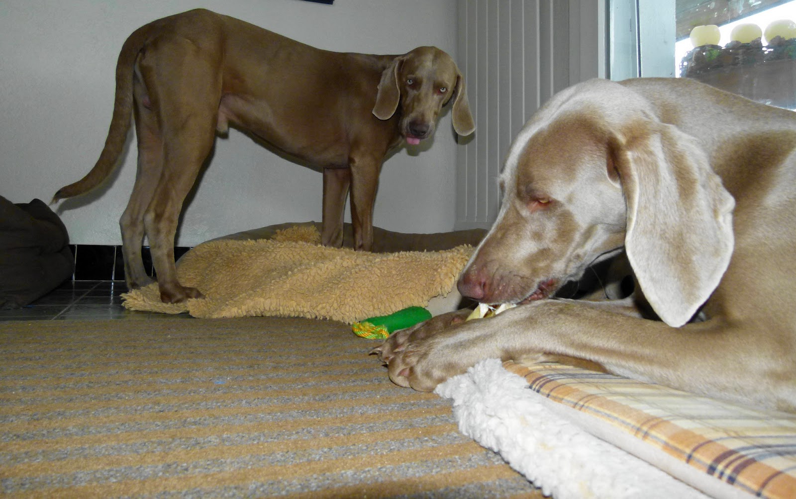 | Nicky regarde avec envie…tire sa langue… Silver manger son oreilles…..de bœuf |