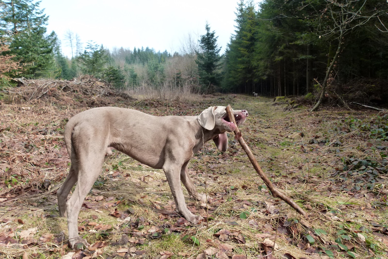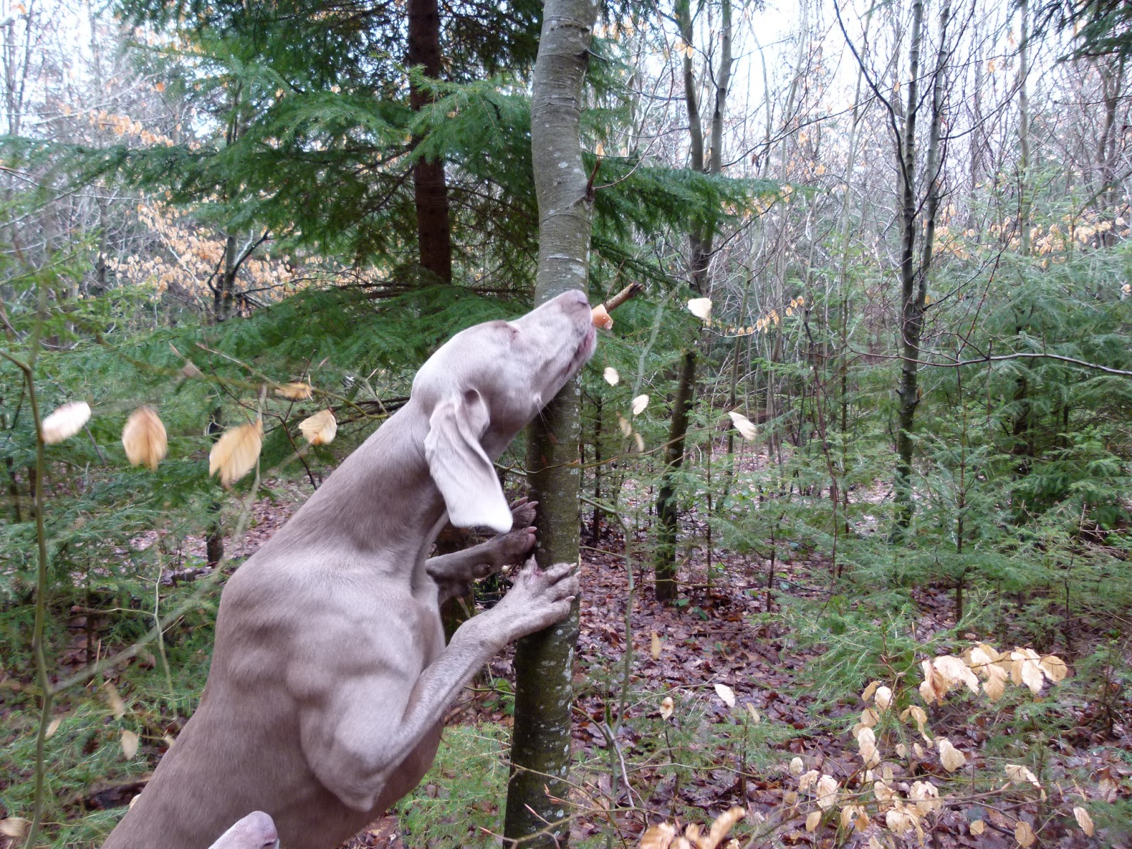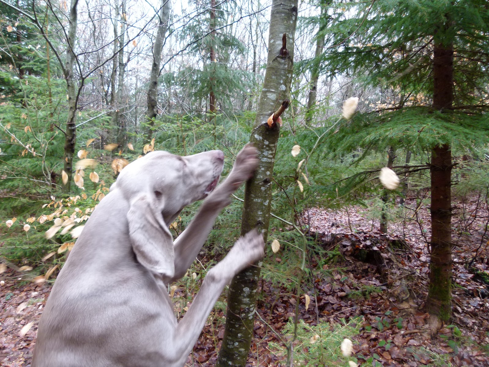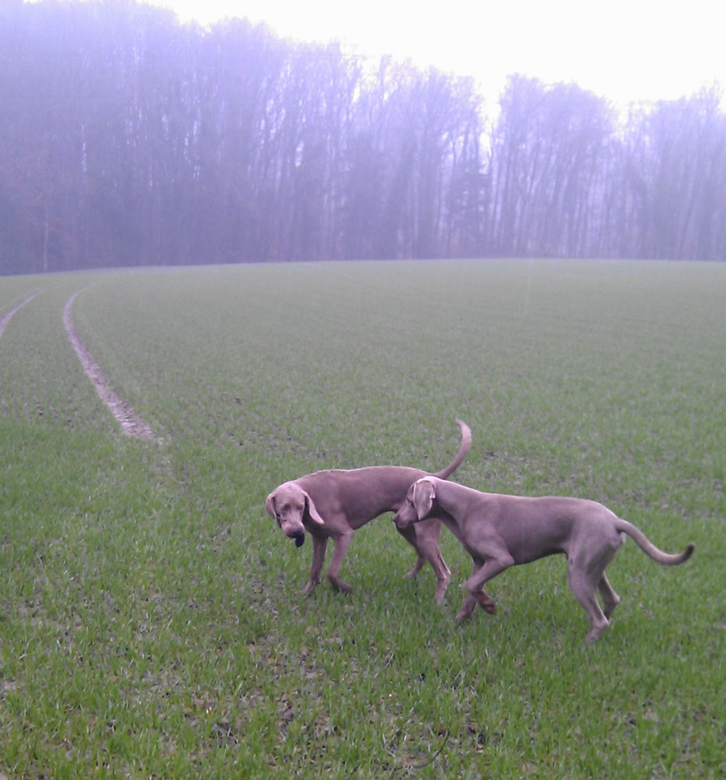 Hello! Il a arrêté de pleuvoir et, c’est 15h°°. Les chiens ont des fourmis dans les pattes et, me font comprendre qu’il est temps de bouger mon popotin. D’accord, je me bouge et me décide à partir avec eux en promenade direction la forêt de Yens. Je me dit ça sera une promenade pépère et, qu’il n’y aura pas grand monde. Que né-ni! Avant la première rencontre, j’entends le bruit de frein d’un vélo mais, pas de vélo. je me dit qu’il y a un cycliste fantôme mais, le temps de réagir, le cycliste VTT était derrière moi prêt à m’encorner avec son guidon. (Je plaisante) le cycliste me demande si, mes chiens vont lui courir après, je lui réponds “Oui, si mes chiens lui voient ces mollets” Par chance, ce cycliste avait un pantalon long. Plus tard, nous avons rencontré un marcheur, j’ai fait causette pendant quelques minutes et, durant mon blabla, les chiens sont venus lui dire bonjour et, ont exploré les alentours.un exercice de recherche était également à l’ordre du jour car, j’avais pris avec moi un cervelas de volaille. La poule qui a fini en cervelas n’a pas eu de pot car, après avoir pondu ses œufs pour Pâques voilà qu’elle fini en saucisse en croix suisse. Plus tard, grosse surprise,; des braques de Weimar un mâle de 4 ans et une femelle de …..c’est une femelle et, par courtoisie, je n’ai pas osé lui demander son âge. Le mâle avait une cécité sur un œil et, Nicky a eu un peu de problème d’amitié avec lui, ça a grogné des 2 côtés mais, sans toucher au vinaigre. Silver a été sage avec tout se monde. Arrivé à la voiture, Nicky et Silver ont décidé de me faire la trignolette. Comme, je n’était pas pressé j’ai fermé les yeux et, leur p’tite fugue à durée 10 minutes. Ce qui est tout à fait correct pour moi car, courrier avec eux se n’est plus de mon âge.