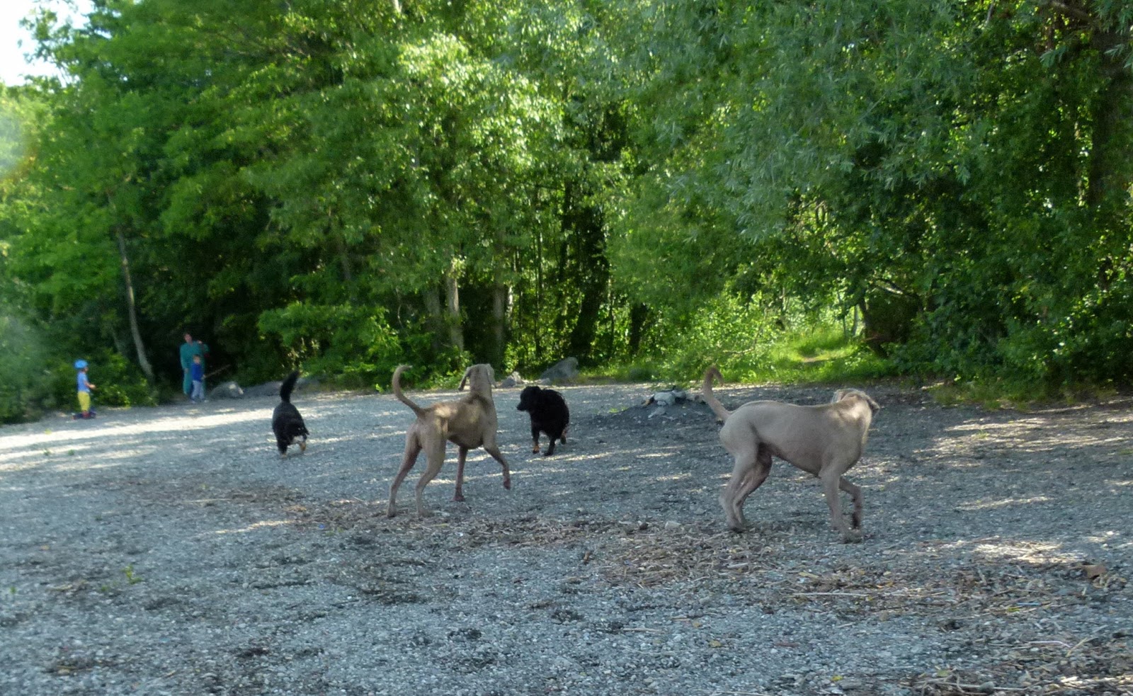 Bonjour! Ce matin promendae de 2 heures le long de l’aubonne à Allaman. La première rencontre a été effectuée 5 minutes aprés que Nicky et silver soient sortie de la voiture. Je vois un chien de type berger appenzellois. Pendant 2 à 3 minutes, je discute un peu avec son accompagnat et, je me permets même de cocoler ce chien car, je vois qu’il n’est pas trop rasuré. Je demande à Nicky et silver d’aller doucement pour le jeu. Mais, ce chien est sur la défensive et, il commence à sortir les crocs. Alors, nous n’insistons pas et, nous disons “Au revoir à Roxy car, apparemmet il ne connaisait plus la musique canine. Durant la ballade, nous avons rencontré un marcheur – craintif envers les chiens – et, plus tard une dame accompagnée de 2 enfants et de 2 chiens. Cette dame n’avait pas du tout l’impression de pouvoir gérer tooooutou ce petit monde. J’ai préférer quitter les lieux en l’occurrence la plage de l’anse de l’Aubonne.