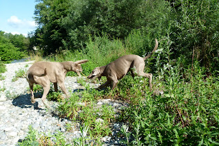 Il est 18h30 Je viens de revenir avec mes 2 champions.. Je les appelle comme ça car, je trouve qu’il son champion dans toutes les disciplines athlétiques. Nous avons effectué une promenade de 1h30 dans la forêt le Lully. Il a eu de la natation, du saut en hauteur sur des troncs d’arbres couchés en travers de notre chemin. De la course entre Nicky et Silver et du braque danse, Quelques rencontres tel que celles d’un Husky en liberté – non surveillé. Une jeune femme avec un Terrier Noir et Brun quelle tiens en laisse – sans être à laisse. Une dame sans chien mais avec des cabas qui pique-nique sur un banc taillé à la hache.Enfin, une ballade sans histoire, cool, tranquille et tout de même fatigante car, le parcourt est assez vallonné.