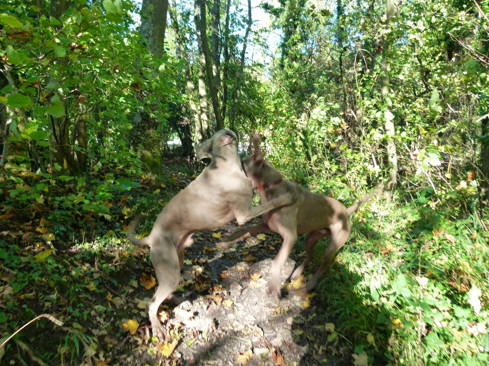De temps en temps, Nicky et Silver décident de jouer les prolongations. Je les laisse faire surtout durant la balade matinale car, je me dit: “Cool, je ne suis pas pressé” De plus, si, ils ont faim, ils reviendront assez vite pour avoir leur gamelle de midi. Ce jour là,la prolongation a durée près de 30 minutes. Le plus fréquent, ça ne dure pas plus de 5 minutes. Il faut dire que ces chiens ça a vraiment besoin de bouger alors, patience et plaisir sont mes “light motivs”.