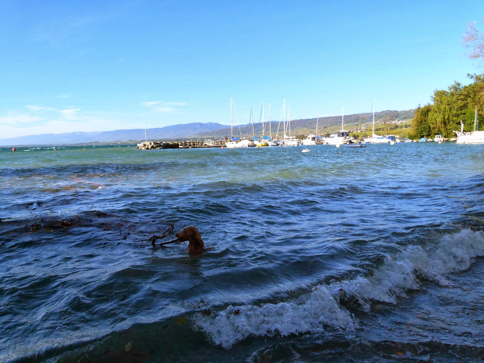 Ce matin, belle promenade le long de l’Aubonne. Nous avons fait plusieurs rencontres, fait de la recherche et jouer avec une balle-ficelle ainsi que de la baignade.