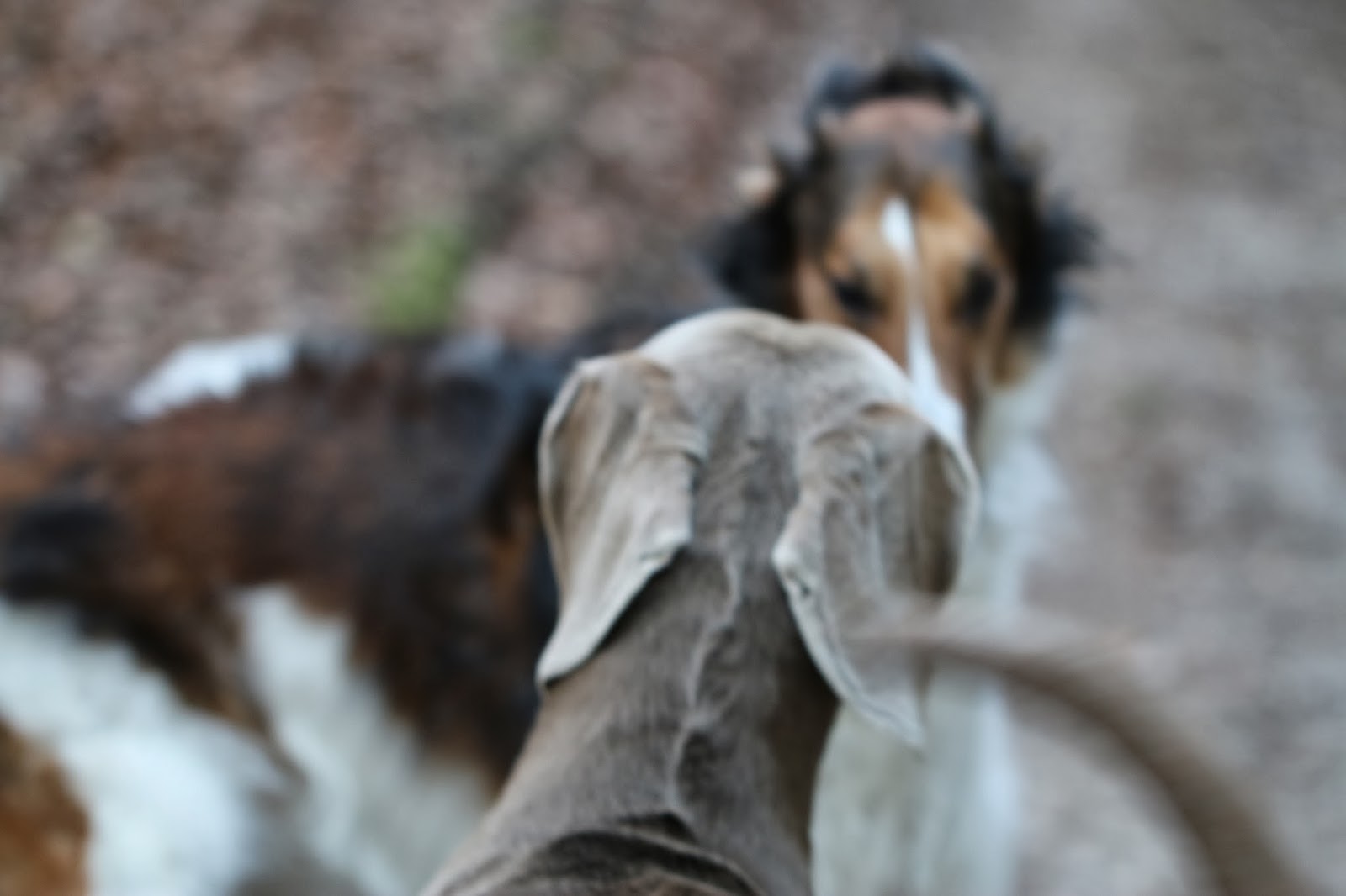 Cet après-midi, départ à nouveau pour Yens. Petite balade d’une heure dans le sud de la forêt. Notre 1ère rencontre s’effectue avec une dame qui tenait son chien (manteauné) en laisse. Comme dab. Lors d’une situation de ce genre, nous ignorons totalement le duo et nous continuons notre chemin. Un 4 x 4 nous croisent et, je remarque que dans le coffre il y a une cage à chien ainsi que du matériel de chasseur. Plus tard, pas manqué, le 4×4 était garé et, j’ai entendu les sons de clochettes. J’ai motivé mes chiens à rester près de moi pendant un moment et, en me retournant je remarque que 2 chiens de chasse étaient sur le chemin. Nous avons continué notre balade comme si rien n’était. Plus tard, à notre retour (300 m) avant d’arriver à la voiture. J’ai entendu un (roquet) aboyé. Ensuite, je voie 2 personnes et un chien plus grand. Ces personnes âgées et les chiens, nous les avions croisés lors d’une précédente balade. Tous les après-midi, ils font exactement la même balade. Ce genre de personne n’aime pas l’imprévue, ils ont planqués leurs chiens vite fait dans la voiture et, sont repartis.