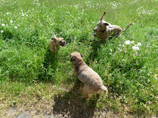 Jeux avec une équipe de Border Terrier.