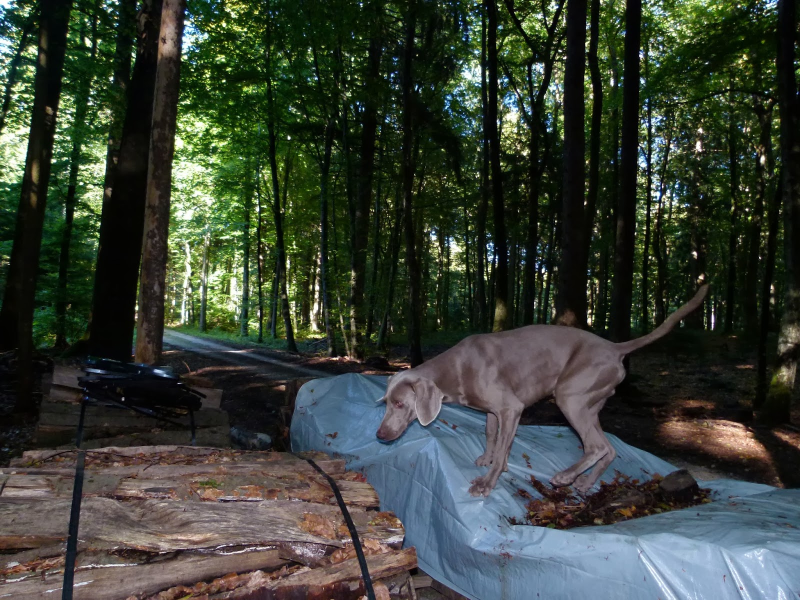 | Dans cette forêt, nous avons repéré 3 abreuvoirs à arbre et, les chiens savent ou, ils se trouvent. |