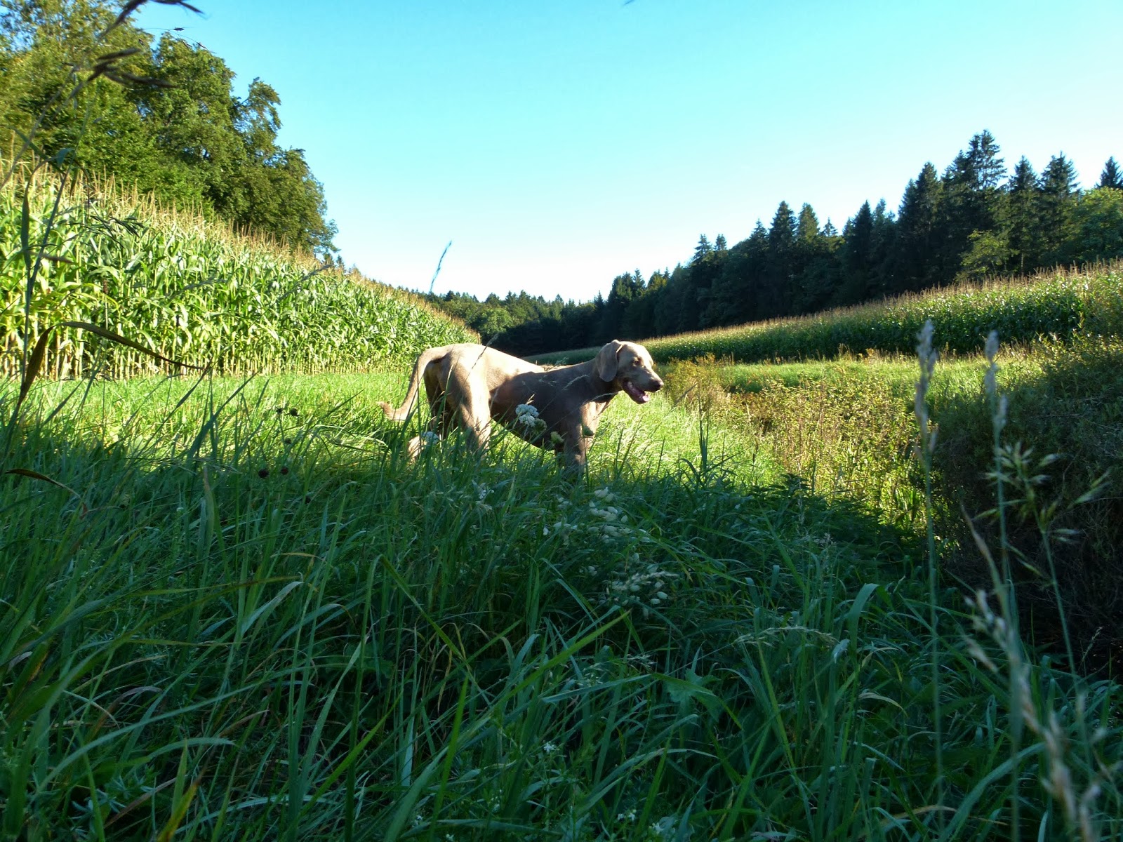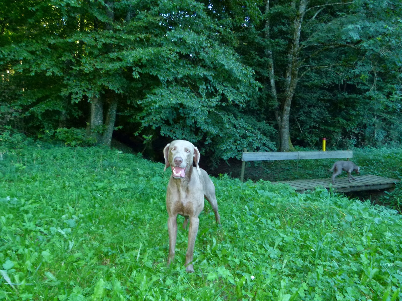 Cet après midi, j’ai eu le grand plaisir d’aller balader mes 2 champions. Cet promenade a eu lieu dans la fore^t de Yens. A notre arrivée, une voiture que je connaissais arrivait 2 minutes après moi. Je me suis dit que cette voiture je l’avais déjà vu dans cette fore^t. Je ne suis donc pas pressé pour me mettre en route avec mes 2 loustics. Après quelques instants, la conductrice de ce fameux véhicule a ouvert le coffre et, un chien noir (genre Labrador) en est sorti. C’était Bimbo….. ce chien je le connais depuis quelques années car, c’est souvent son maître qui le promène. Il fait de grand parcours en marche Nordik (genre GR20) avec son fameux Bimbo. Bimbo a eu fort affaire avec mes 2 loustics car, ils se sont mis à jouer pendant un bon moment ensemble. Entre temps, une promeneuse est arrivée. Elle nous a tout de suite dit quelle n’était pas très fan de chien. Mais, trop tard, Silver lui avait déjà fait un baisse main. Nous avons discutée tous les trois ensemble et, je lui ai fait une petite démo des qualités de mon ami Nicky. Juste pour lui montrer les possibilité que peu avoir un ami à 4 pattes.