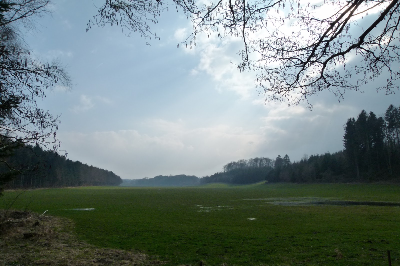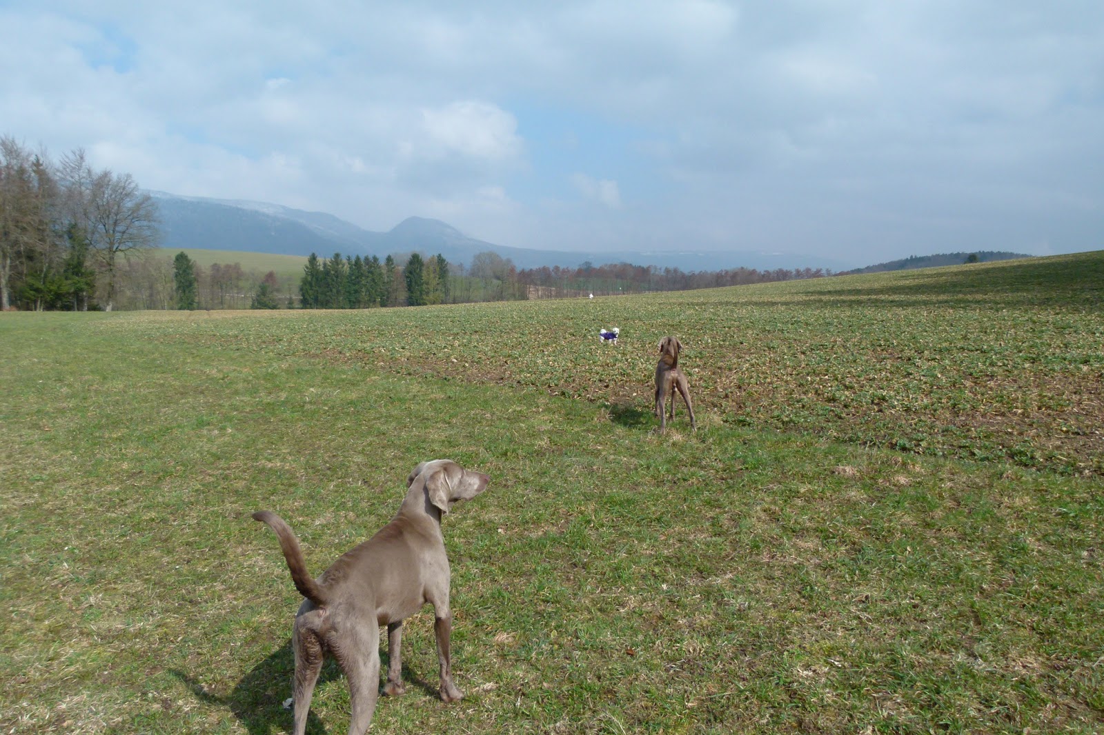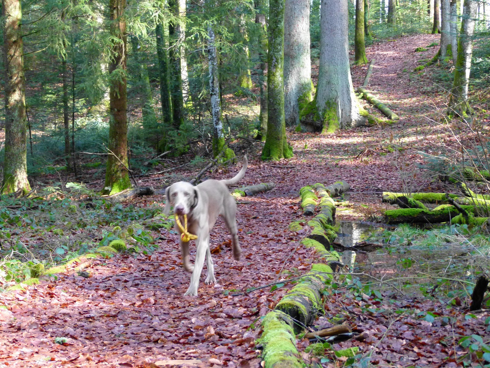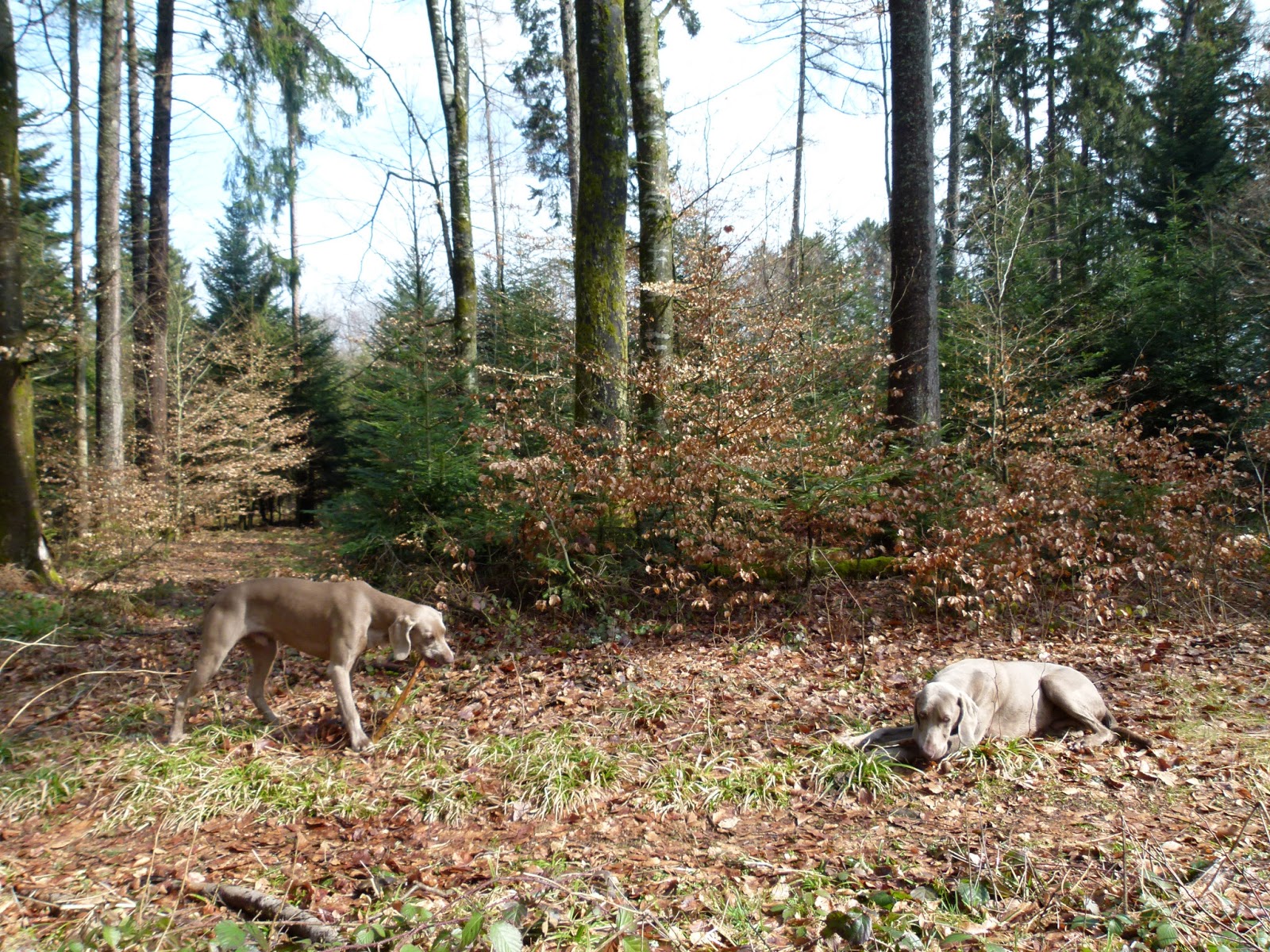 Hello! La promenade Pascale à Pâques s’est déroulée dans la forêt de Yens. Comme vous pouvez le constater, nous avons traversé un marais (au cas, ou, il y aurait des œufs cachés) . durant la moité du parcourt rien d’habituelle n’est venu troubler notre parcours. Ensuite de cela, un bichon (y en a même en forêt) est venu nous surprendre. Ce bichon faisait parti de la meute de chiens que (Dame à chiens) ou Dalmatien promène tous les jours. Toute la meute et ces dames étaient au dessus d’une colline boisée et, le seul chien téméraire était ce bichon. D’autre part, ce grand fauve grognait à fond auprès de Nicky et Silver. Je me suis bien marais (non, ça c’était avant) enfin ça m’a fait sourire de voir cette situation et, pendant ce temps, les deux dames s’égosillaient à rappeler leur bichon. J’aurais pû leur prêter mon tire-bichon……