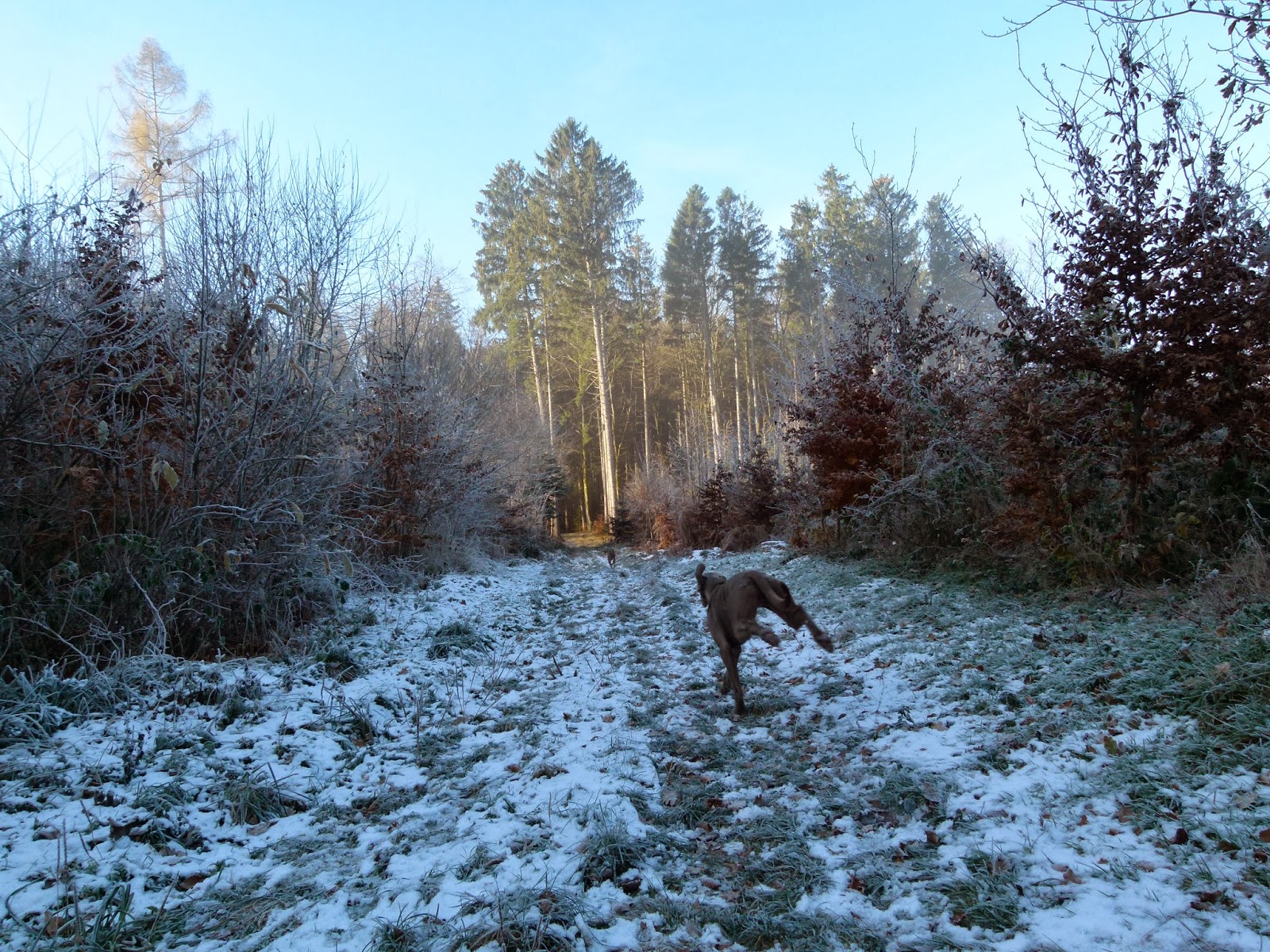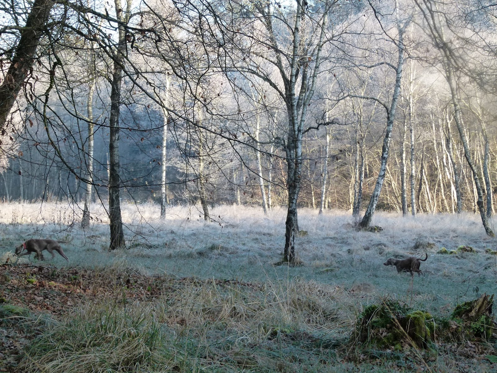 Ce matin, une balade de plus de 2 heures a été effectuée dans les bois de Yens. Nous sommes passés juste au-dessus du brouillard. Donc, un beau ciel bleu nous attendait. Aucune rencontre durant cette promenade. Même pas la moindre petite souris des bois. Nicky et Silver ont explorés les environs à fond. Cela ne veut pas dire qu’ils ont chassés. Ce n’est toujours pas leur « Truc ».