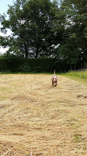 Ici, l’herbe est enfin coupée…. Il y a plus qu’en en fait une meule.de foin pour que Nicky puisse monter dessus.