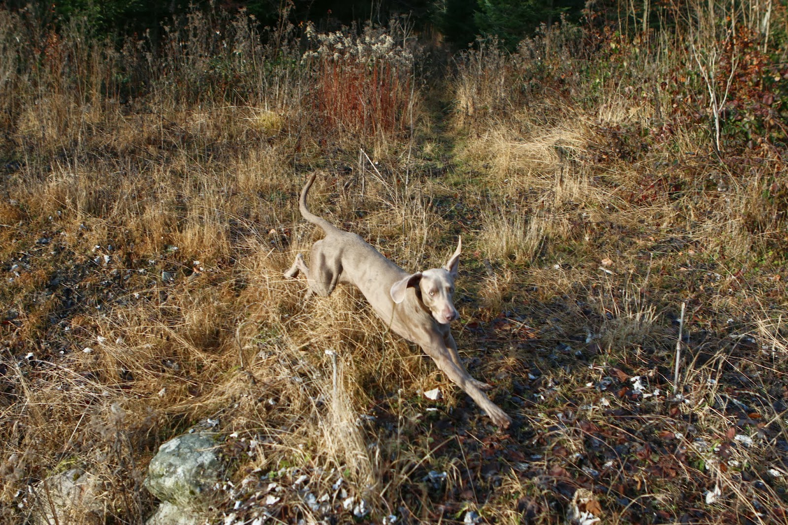 Cet après-midi, c’était trop marrant ! J’ai été promené mes 2 chercheurs de rongeurs juste à 300 m de la maison. Là, c’est la campagne, il y a que des champs et des chants d’oiseaux. Il y a de quoi se creuser les méninges pour moi et, pour mes 2 loustics eux leur but principal c’est de creuser pour trouver des rongeurs. Ils me semblent qu’ils ont adopté une tactique. Celle de creuser chacun par une des 2 extrémités d’un tunnel. Comme ça, la bestiole peut partir d’un côté ou de l’autre, elle sera « kouik » dans la gueule du loup euh, pardon du chien. Résultat final : Chacun a eu à croquer sa bestiole.