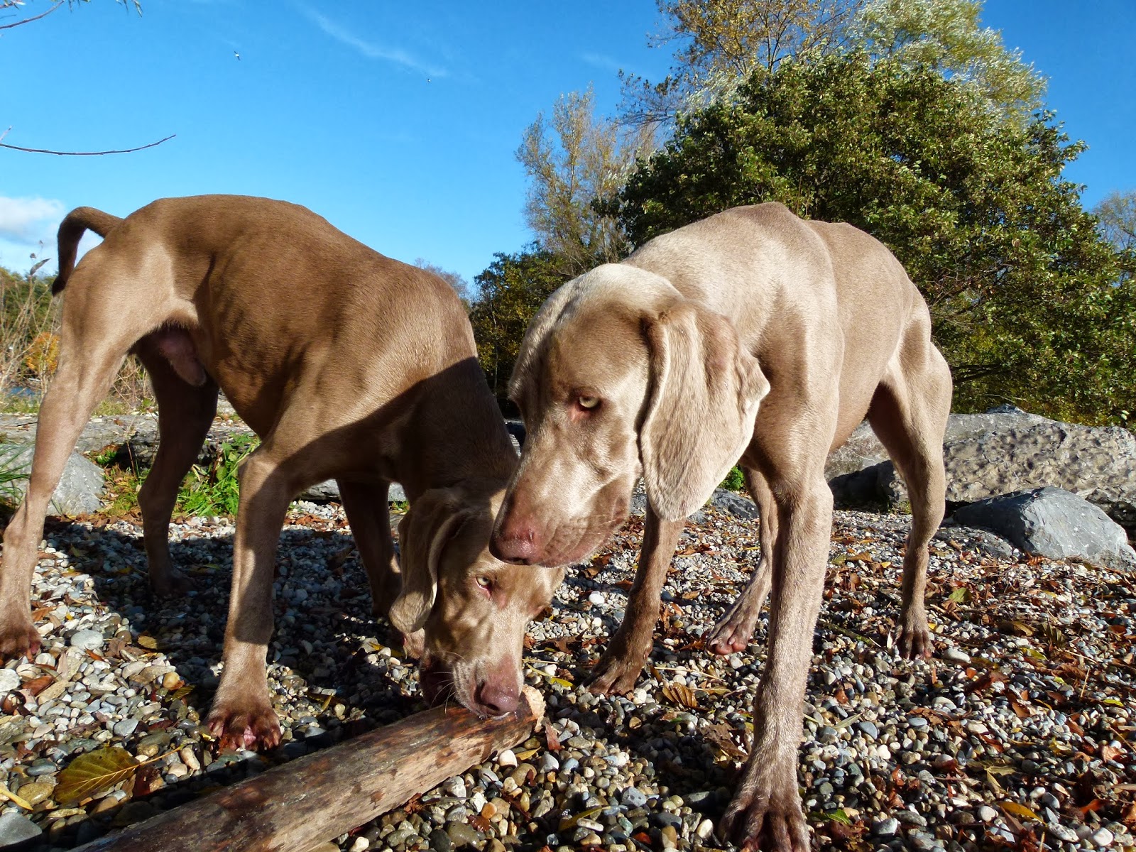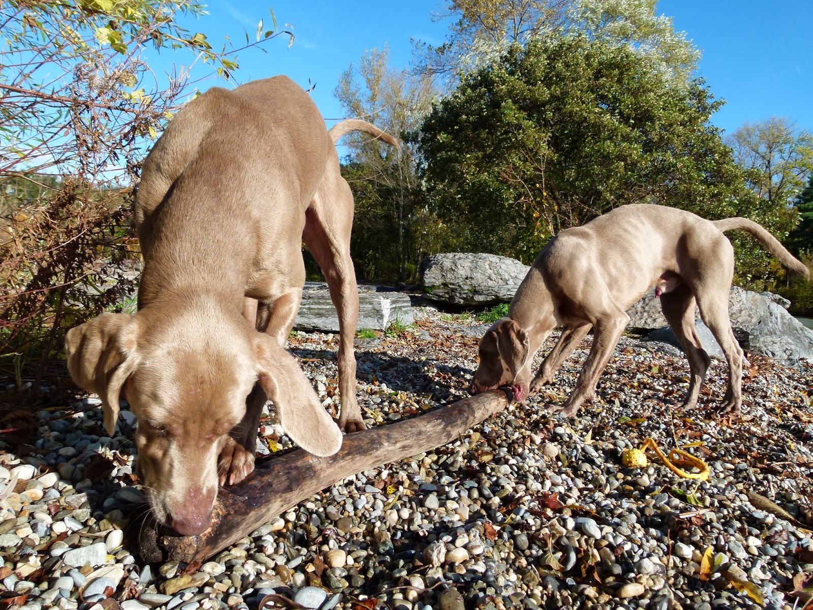 Bien le bonjour! Ce matin, départ direction Etoy-Allaman. Il y a déjà quelques jours que nous n’avons pas mis les pattes dans le coin. Dès notre arrivée, Nicky et Silver ont repéré un « loulou ». C’était un chien de type Berger couleur gris. Le chien était assez partant pour jouer mais, j’ai remarqué que sa maîtresse n’était pas trop d’accord. Elle insistait tellement pour le rappeler à ces pieds que je n’ai pas insisté à ce que Nicky et Silver soient pour un cours instant ces compagnons de jeux. Dommage ! A ce propos, prochainement je mettrai sur ce « blogue » une copie d’un article concernant les besoins et l’attitude naturelle d’un chien. Je suis à 100% d’accord avec la personne qui a écrit cet article. Chien Magazine est vraiment devenu très bien. Assez technique et pointu dans le milieu canin mais, les articles sur le comportement du chien et, du maître donne à réfléchir sur notre attitude à avoir avec nos amis les chiens. Ce matin, lors de la balade, j’ai comme d’habitude laissé Nicky et Silver creusé pour trouver un rongeur. Alors que Nicky sait mis en tête de changer d’endroit, en moins de 2 à 3 secondes, le voilà qu’il revient avec une jolie taupe. MDR vraiment, j’étais Mord De Rire. Le gaillard, tout fier en se dandinant et en nous « disant : « J’ai trouvé une taupe, tralalalalal, j’ai trouvé une taupe…. » Vraiment, il y a de quoirire. Tous les jours, ces 2 loulous me font marrer. J’en pleure de rire. Sur les photos ci-dessous, vous pouvez constater que Nicky et Silver se partage leur « Trophée » bout de bois, etc…. C’est vraiment de Très grand Frères et amis. ADORABLE QU’ILS SONT CES DEUX Là. VRAIMENT CHOU……ETTE AVEC LEURS YEUX DE CHOU…….ETTE…
