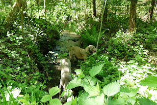 Bonjour, il parait qu’aujourd’hui ça sera une journée des plus ensoleillée donc des plus chaudes. En effet lors de notre promenade matinale, Nicky et Silver ont eu un peu chaud et soif. Maintenant, je n’oublie pas ma gourde (d’eau) avec moi. En passant à Apples, je me suis arrêtée à l’épicerie pour acheter des bricoles et, du cervelas pour mes 2 loulous. Nicky a de suite voulue me le voler lorsque je l’avais dans les mains. Pendant, que je conduisais, il y avait le museau de Silver dans la poche de mon gilet. il était à 2 doigts de me voler le cervelas. Enfin, nous avons fait une ballade de plus de 2 heures. J’ai passé vraiment hors des sentiers battus à la recherche de morilles. Sans succès, elles sont vraiment planquées je ne sais ou. J’ai repris l’entrainement de recherche de truffe avec mon ami Nicky et, ça, il n’y a pas de problème. il est toujours branché mais, en trouver pour l’instant nada. Je patiente et, un jour c’est comme à la loterie Bingo le gros lot..