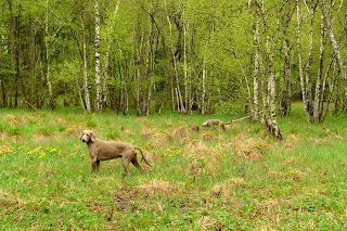 18h°° Retour de promenade, nous avons été à Yens. Après 10 minutes de promenade, nous croissons 2 vététéistes. Les chiens eux, restent préoccupés par leur recherche de rongeurs dans le champ d’à côté. Sans succès dans leur recherche, nous reprenons notre promenade durant plus d’une demie heure. Tout à coup, je vois une joggeuse descendre un chemin de campagne. Elle est accompagnée de (Oh surprise!) 2 Braques de Weimar. Cette joggeuse est une dame venant de Yens qui, il y a 10 mois sa chienne a mis bas une portée de 9 chiots. Elle a gardée bien entendu la mère et une fille. Je ne vous dit pas la surprise de Nicky et Silver. Ils étaient vraiment heureux de pouvoir jouer avec une jeune fille de presque leur âge. Un moment donné, Silver est venu vers nous pendant que l’ont discutaient pour voir si Maman Braque voulaient aussi jouer. Sa réponse a été très vite compris par Silver soit: une bonne aboyée et une belle dentition en vue. Donc, Mamie braque est restée près de nous. Après plus de 5 bonnes minutes, nous avons repris notre chemin chacun de son côté. Nous rencontrons une famille d’apiculteurs (enfin, c’est madame qui porte la culotte (pardon la combinaison) pendant que monsieur se promènent avec les enfants. Vous constaterez sur les photos que Nicky et Silver sont en promenade libre -sans laisse- Aucun soucis avec les enfants lors de notre croisement. Les chiens ne se sont pas du tout intéressés à ce petit monde. Plus tard, nous rencontrons encore un joggeur accompagné de 2 chiens. Nous avons échangé quelques mots durant un bout de chemin et, Nicky et Silver ont joués un peu avec l’un des chiens. Quelques minutes plus tard, nous sommes arrivés à la voiture. Nicky et Silver ont tourné autour du véhicule afin d’y trouver une porte ouverte. Ils n’ont donc même pas chercher à me jouer la trignolette. Vraiment, c’est agréable d’avoir 2 chiens aussi fantastique. C’est vraiment un plaisir de leur faire confiance et de pouvoir ce balader sans se demander si, ils vont tout à coup se mettent en chasse ou partir pendant un certain temps en se faisant du mouron. Je remercie souvent ces 2 chiens de leur gentillesse et du bonheur qu’ils me donnent. Pourvu que ça dur. Mais, je pense que ça sera le cas car, comme on dit: ” C’est comme le vin, avec l’âge, il se bonifie”