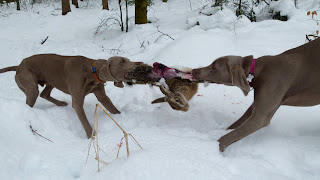 J’ai eu un peu de peine à récupérer la bestiole mais, Nick est un chien super compréhensif alors, il me la donné assez facilement. Bon, je lui ai dit que j’allais le passé à la casserole (le lièvre) pour son repas.
