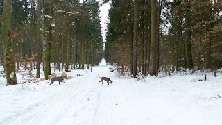 Rencontre avec un cavalier, les chiens sont vraiment très sage. Aucun de cherche poursuivre ce cheval. Après le tour de chauffe des 2 Braques, Nicky c’est mis à jouer avec moi.