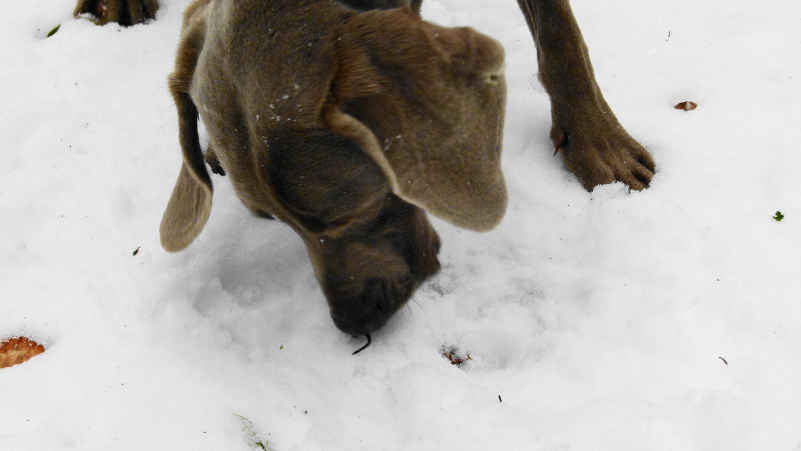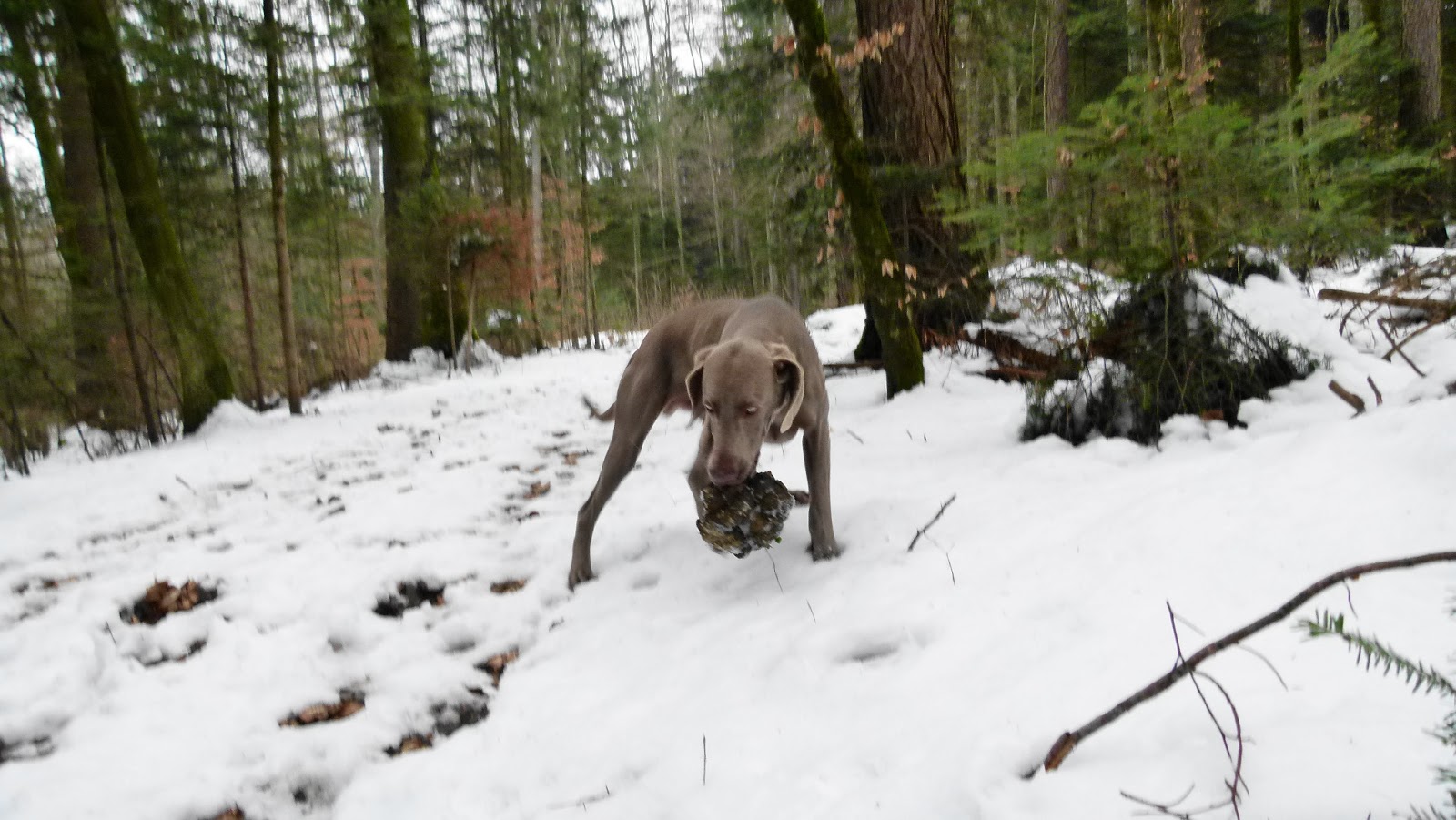 Une friandise posée sur une souche d’arbre à une hauteur de 1.5m. Voir la vidéo lorsque Nicky recherche cette friandise.