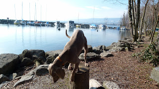 Arrivée à Allaman, j’ai laissé Nick et Silver se défouler quelques minutes. Ensuite, je suis obligé de les contrôler car, il y a quelques villas et, l’un d’elle a un parc de volailles. Ce qui a vraiment beaucoup intéressé Silver. Il voulait sans doute jouer avec une poule ce que moi, je n’aurai jamais osé faire. Enfin, c’est la jeunesse.